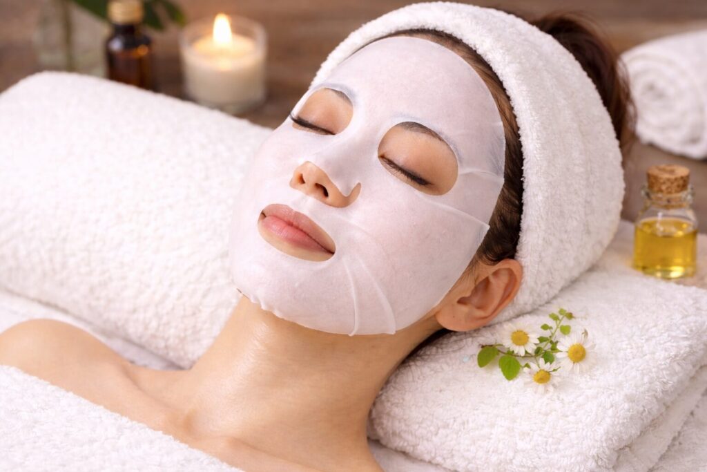 ハーブ導入後は鎮静パックや保湿美容液で肌を落ち着かせます。
