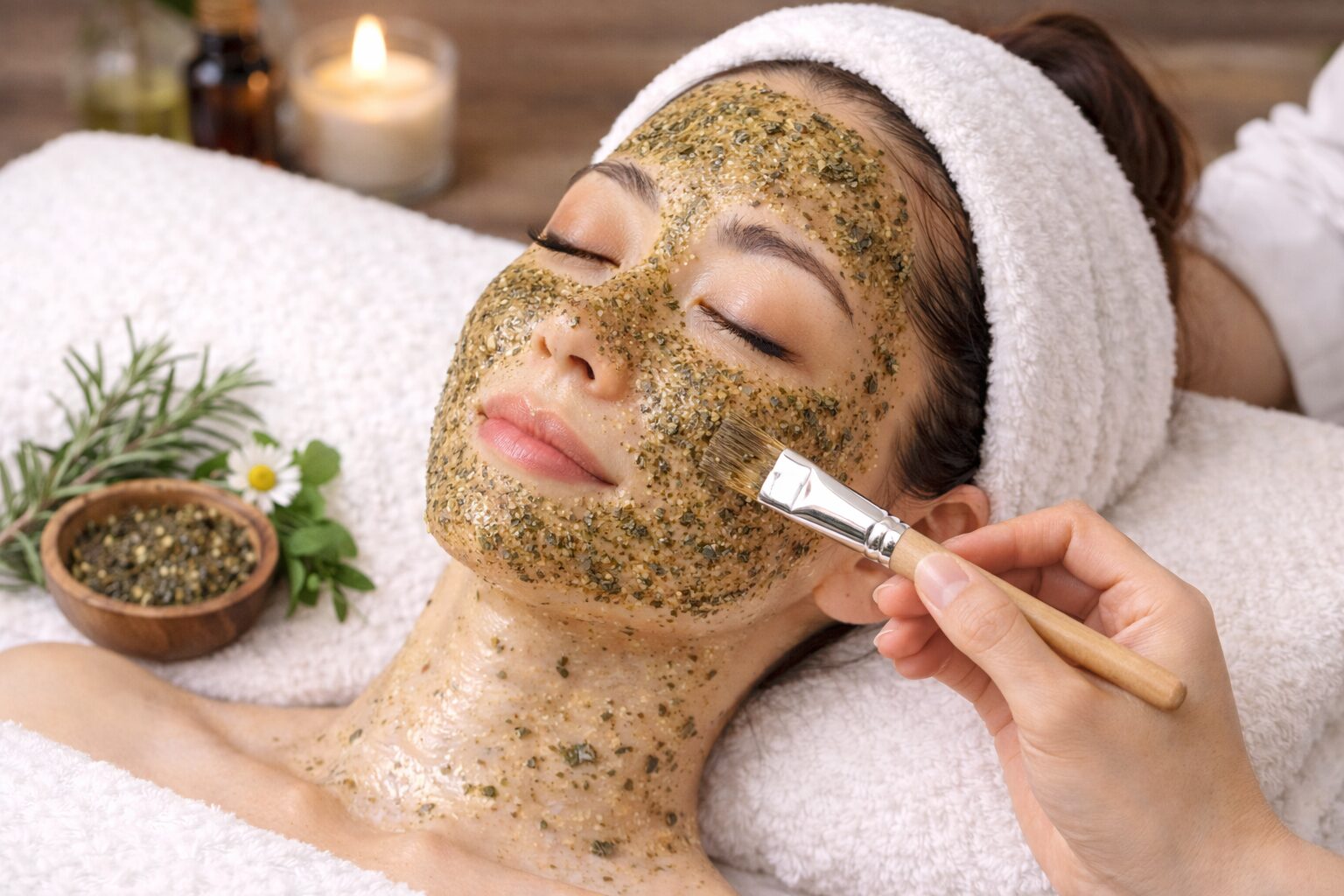 ハーブの棘を含むマッサージ剤をすり込み、肌に刺激を与えてターンオーバーを促します。