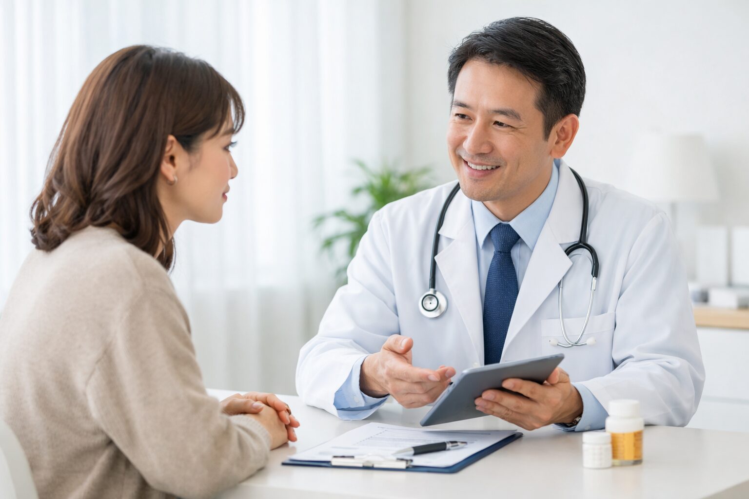現在の肌状態や今後の服用量について、医師と相談しました。