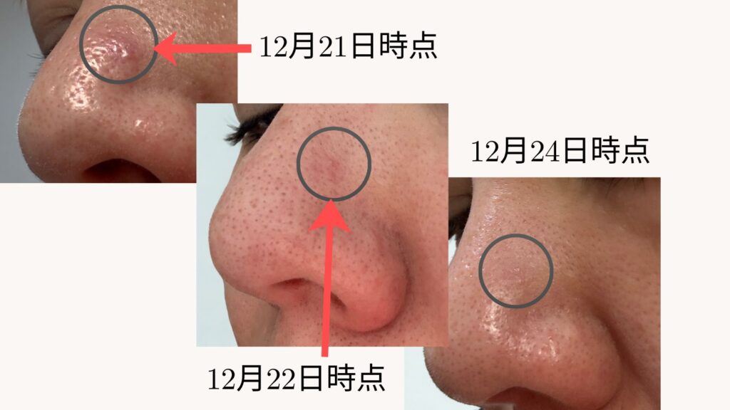 鼻に大きなニキビができたので、クリームを使って検証してみました。